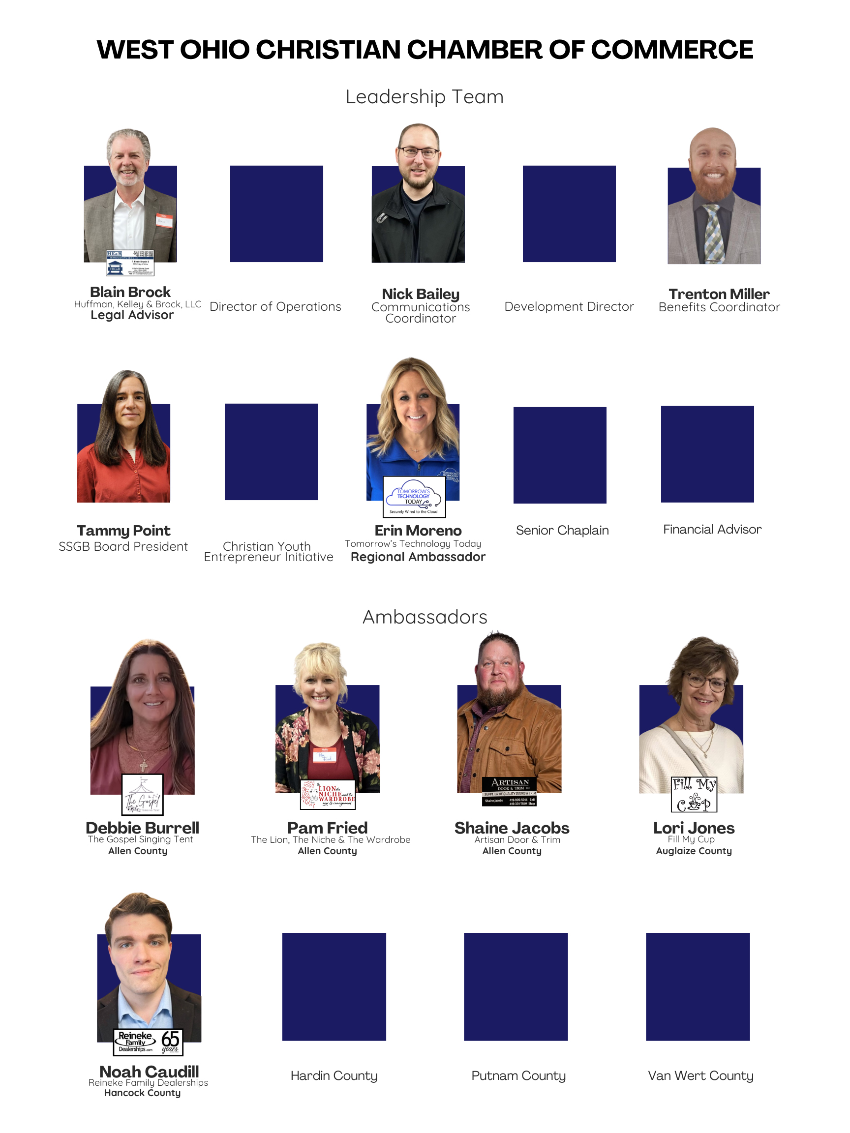 Governed by a board of directors, we serve a seven county region with ambassadors in Allen, Auglaize, Hancock, Hardin, Mercer, Putnam, and Van Wert counties. We conduct monthly county meetings and quarterly regional meetings. You can view a schedule of upcoming meetings on the events calendar.