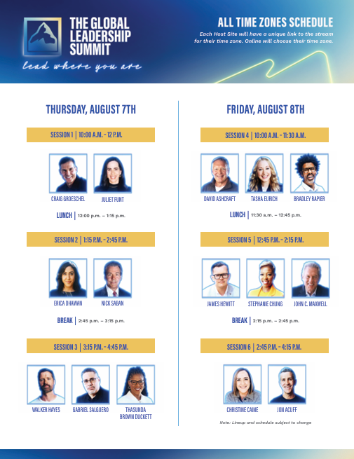 For over 30 years, the Global Leadership Summit has brought leaders together for a powerful two-day experience. With the Summit, you will never lead alone. Our world-class experts will become part of your team, offering key insights and practical resources for long-term impact.