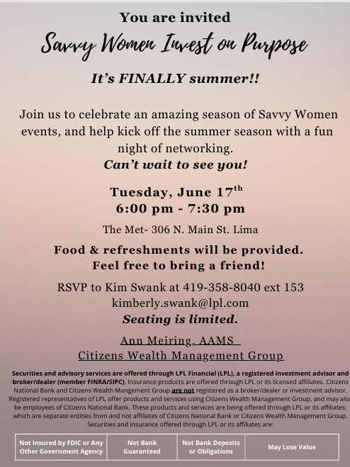 Savvy Women Invest on Purpose-Kick off to Summer